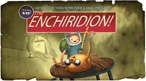 Hay una tercera imagen que es considerada gore, les dire en que consistio esto, al parecer este fue el primer episodio que hicieron por ahi en el 2008 para cartoon network cuando crearon uno en el que la princesa y finn comia espaguetti, a la empresa no le gusto, y crearon el Enchiridion con la imagen de abajo, era una broma para CN con la imagen, pero en el episodio actual (imagen de arriba) en un fragmento de segundo puede verse la verdadera imagen que es la de abajo e inclusive se puede ver la tercera que como lo dije es gore.